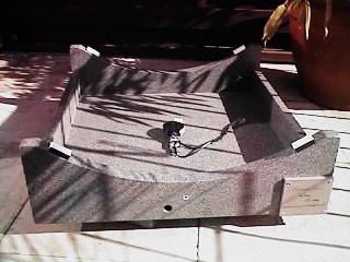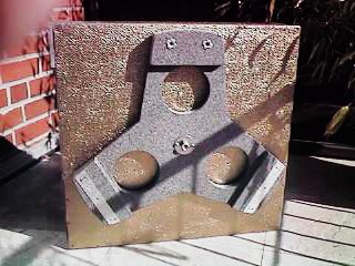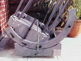 Die ultraflache extrem steife Rocker Box mit dem Encoder für das Azimut. Die Seitenwände sind aus 30 mm, die Front- und Rückwand 20 mm und die Bodenplatte 15 mm Multiplex. Sie ist lediglich 230 mm hoch und wiegt 11 kg. |